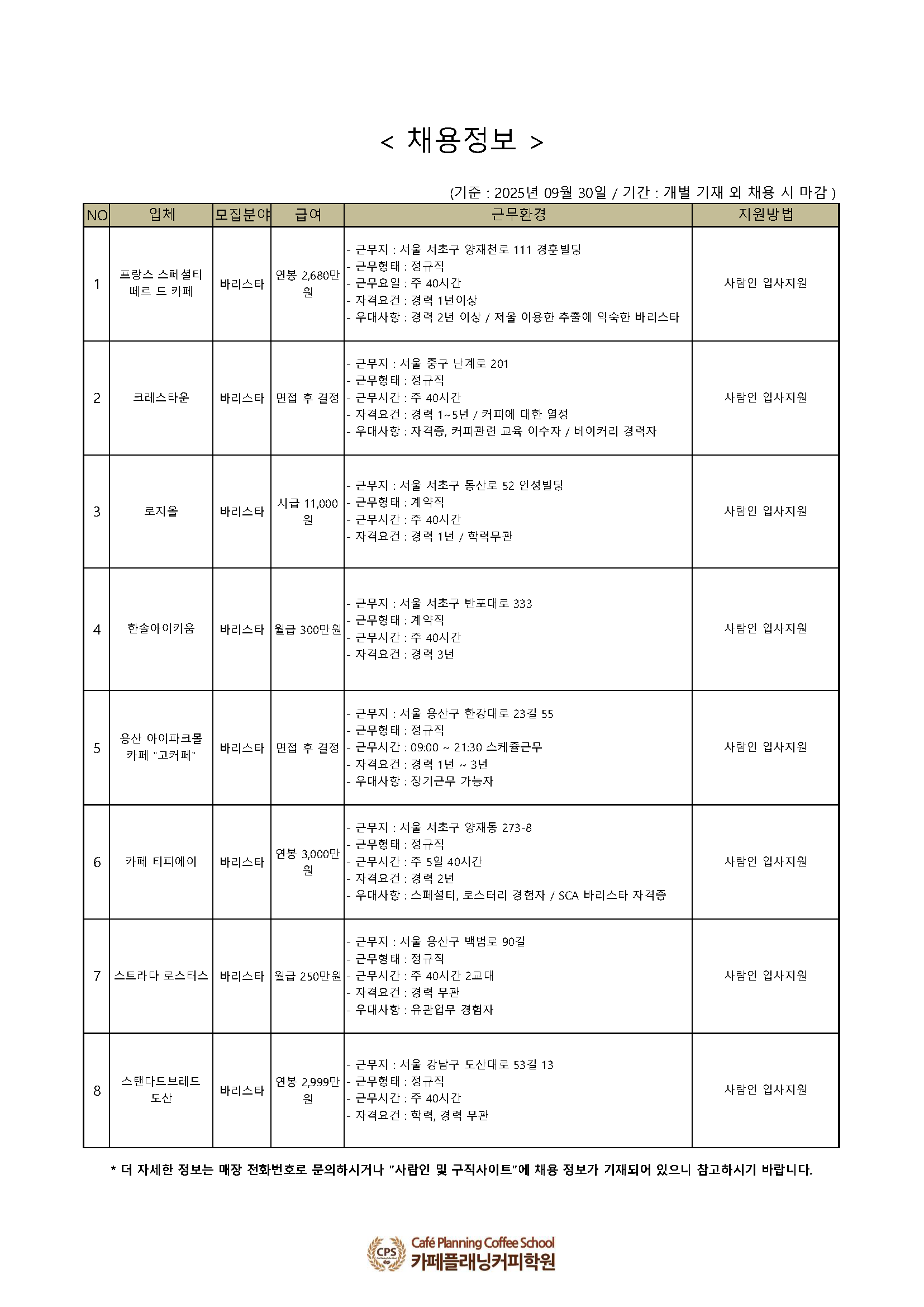 제 목 9월 5주차 바리스타 채용공고 입니다.