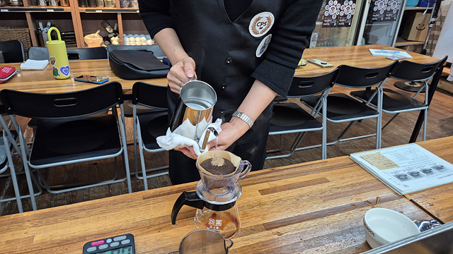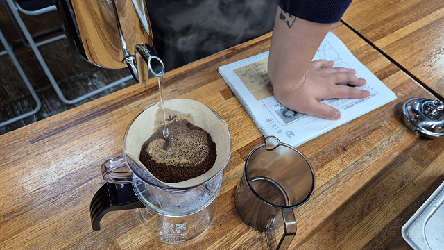 로스팅된 원두는 핸드드립을 통해 커피 맛을 시음해 보았습니다.