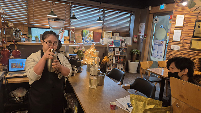 오늘은 1:1 장애인 바리스타 수업을 진행하였습니다.