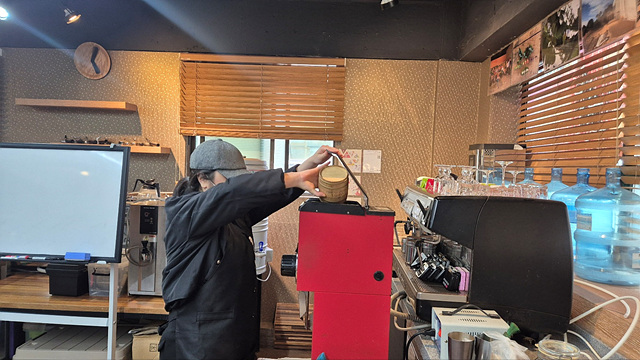 수업을 진행하였습니다. 원두를 그라인딩하고 드립필터를 접고