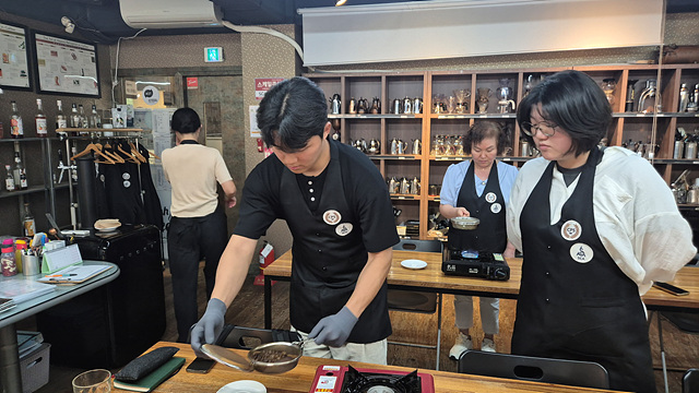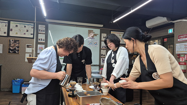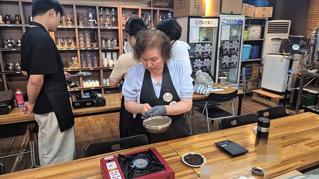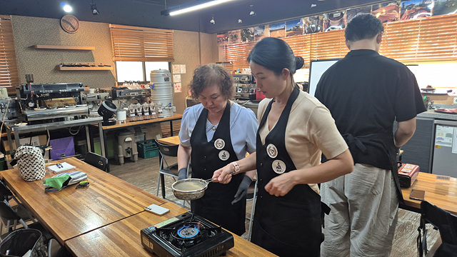 수망 로스팅을 배우고 로스팅된 원두를 핸드드립 커피로 추출하여